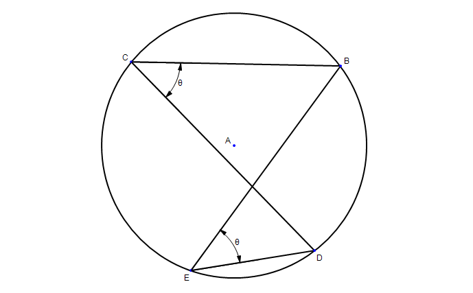 An inscribed angle has a vertex and two endpoints on a circle. If two inscribed angles subtend the same arc, then the angles are congruent.