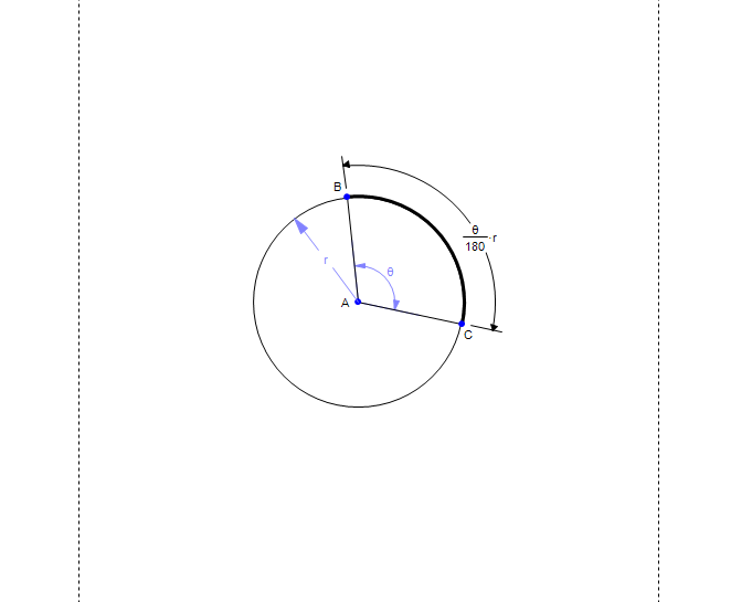 Drag A or B to change the angle and radius. Angle, radius, and arc measures can be edited. * Requires Math Illustrations v2.0 or better or Geometry Expressions v2.2 or better