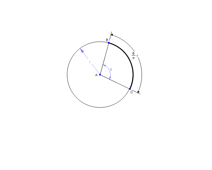 Drag B and C to change the angle or the radius. * Requires Math Illustrations v2.0 or better or Geometry Expressions v2.2 or better
