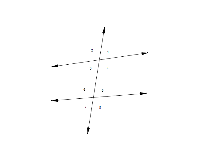 Angles formed by two lines cut by a transversal. The lines do not appear parallel in this diagram, but you are free to constrain them if needed.