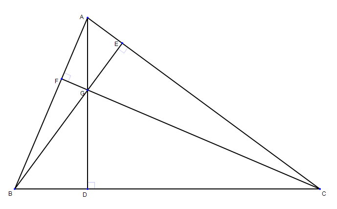 The orthocenter is the intersection of the triangle's altitudes. An altitude is like a height of the triangle; it is perpendicular to a side and goes through the opposite vertex.