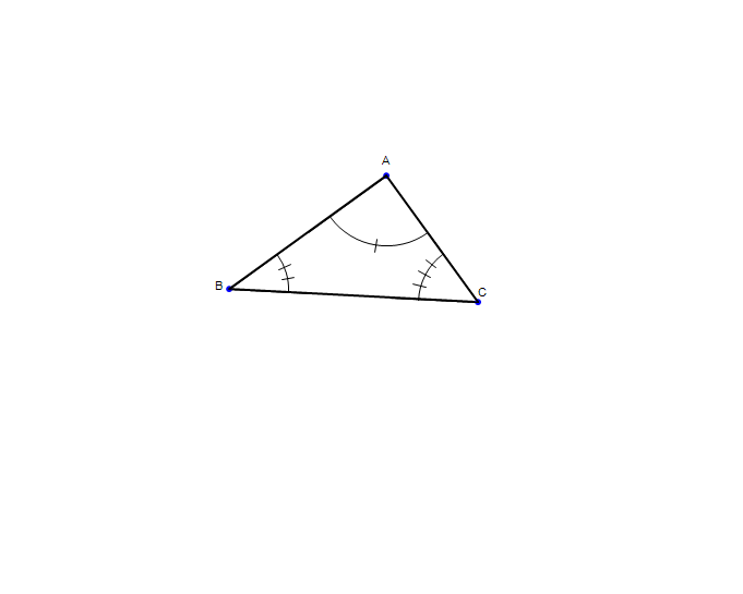 This triangle shows markings for Angle-Angle-Angle. This is not a valid argument for congruence, but it does show similarity.