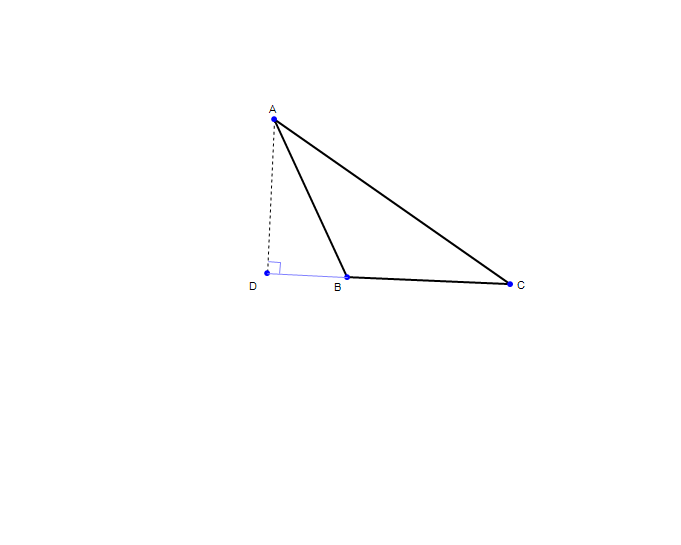 An obtuse triangle with extended side is shown, but the diagram can be modified to form right and acute triangles as well.