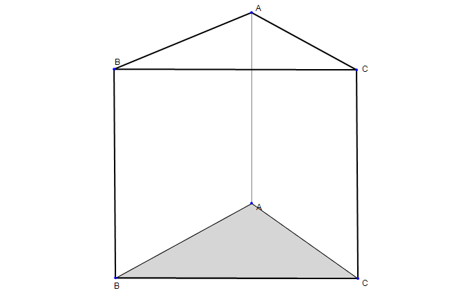 Construction: -Construct a Triangle. -Copy and paste the triangle and place the second triangle above the first. -Connect the correspoding points of the two triangles with segments.