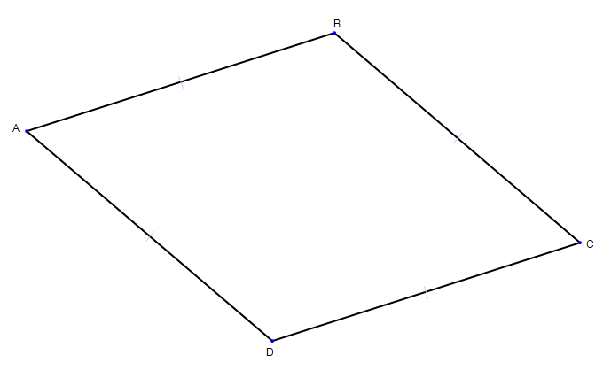 The two pairs of opposite sides are parallel, and all four sides are equal.
